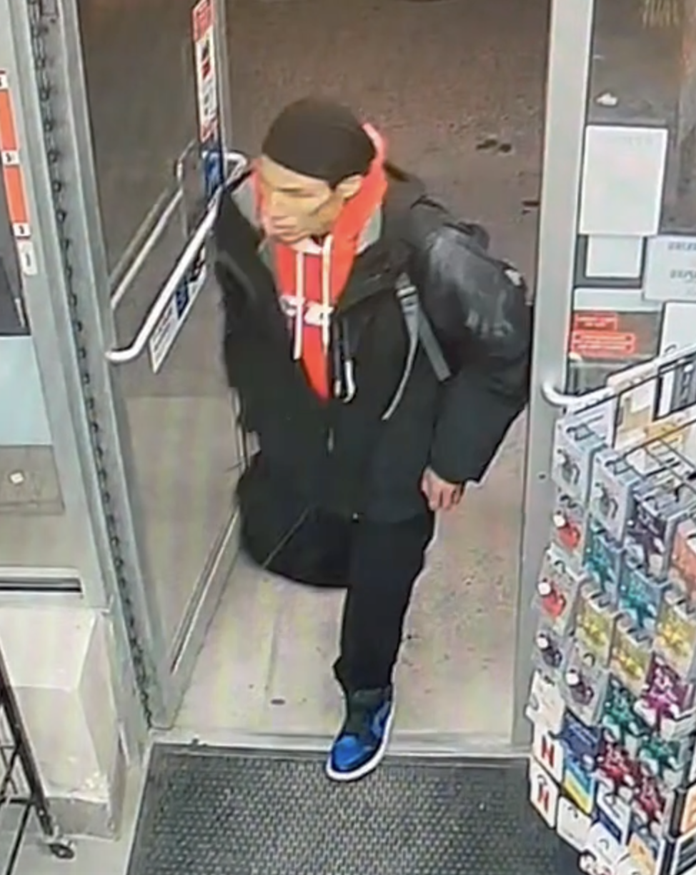 The suspect is described as wearing a Blak coat, black pants, Black/blue and white shoes and a red CCM hoodie. A video of the suspect can be viewed on the mytimminsnow.com website and on the Crimestoppers website at cdcrimestoppers.ca